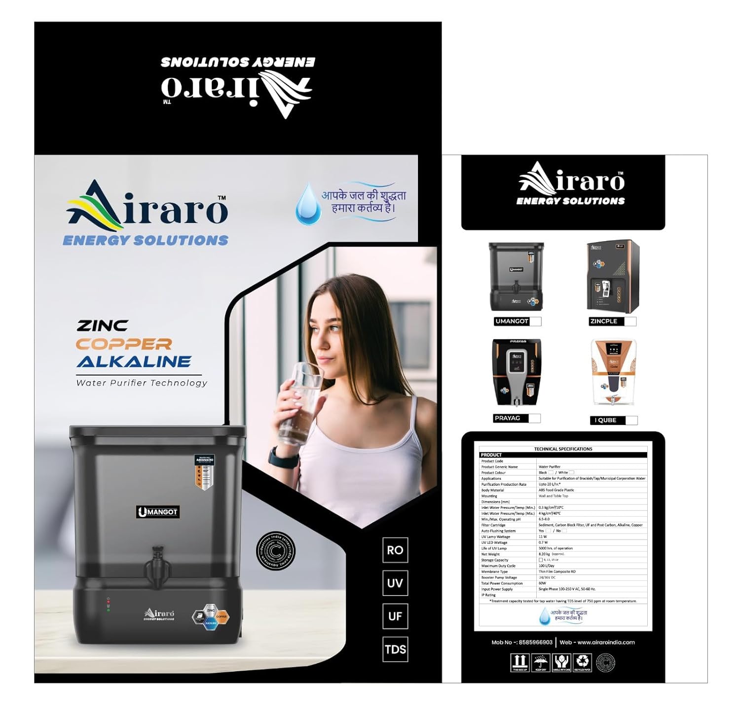 Active Carbon, ,U.V (in tank), 9″Copper+Alkaline+Zinc.